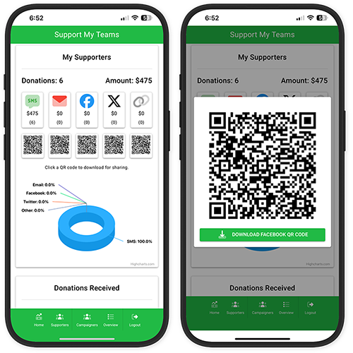 Share the campaign on your social media platforms to reach a wider audience. Download a QR code to share in person or copy a link that can be emailed or shared via text message.